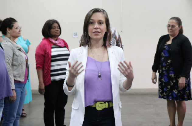 Nathalia durante formação para educadores (foto: Thiago Lopes)