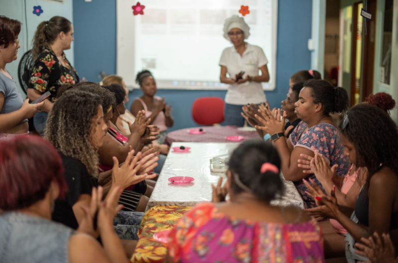 Mas também há um pilar de capacitação e geração de renda, com mais de 40 horas de aprendizado com oficinas e atividades de arte, artesanato, cultura e empreendedorismo. "Temos oficinas, rodas de conversa, palestras informativas e cursos de capacitação. Já fizemos cursos de empreendedorismo feminino, de atendimento ao cliente. Elas fizeram oficinas de sabão, de hidratante, de bolsa, de chaveiro de macramê", revela Ana Paula. Tudo com direito a certificado, para apoiar a introdução dessas mulheres no mercado de trabalho.