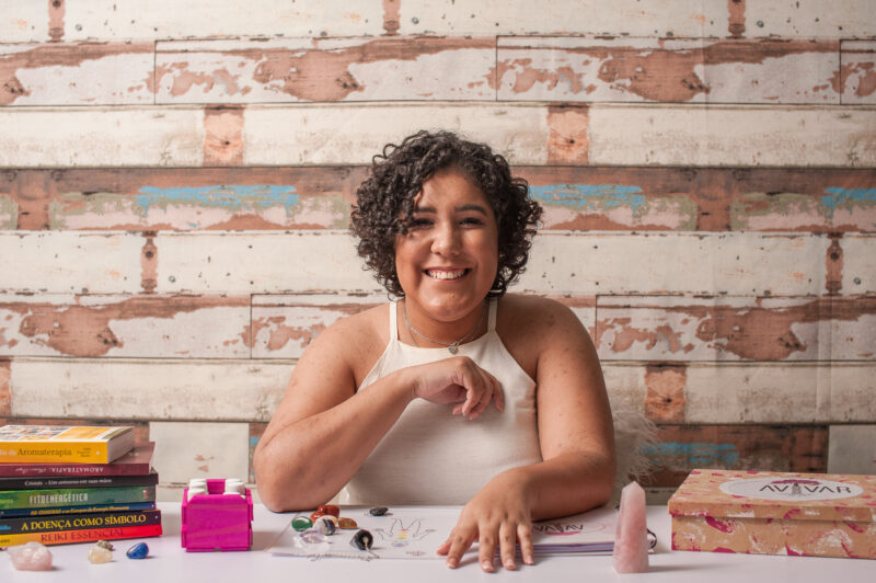 A “Avivar Terapias” é um espaço de autocuidado com foco na venda de produtos terapêuticos, que são a união de diversas terapias, como aromaterapia, reiki e cristaloterapia.
