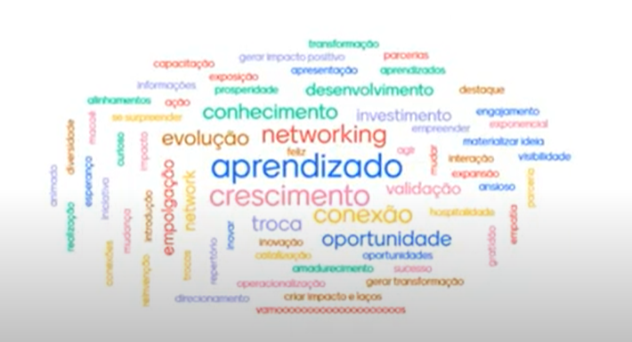Ao fim da fala, os selecionados participaram de uma dinâmica de expectativas que funcionou da seguinte forma; cada pessoa escolhia uma palavra para definir sua expectativa sobre o projeto. Ao final da dinâmica, os participantes puderam ver as escolhas dos colegas formando uma nuvem de palavras na tela, e dessa forma puderam perceber que muitas delas se repetiam, mostrando que as expectativas de muitos eram parecidas.
