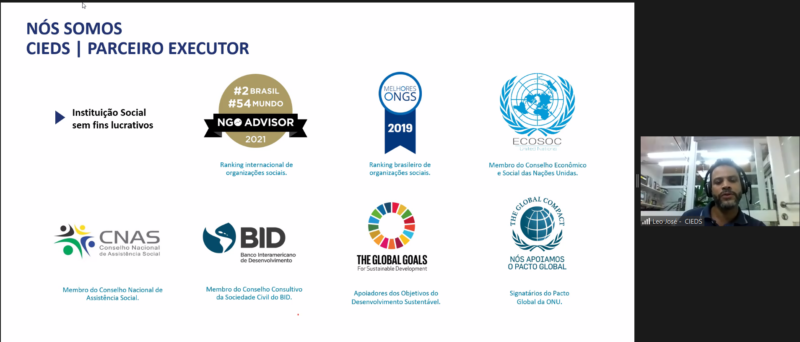 Em seguida, o Coordenador de Projetos Sociais do CIEDS, Leonardo José, explicou os propósitos da instituição como fomento no engajamento comunitário e no empreendedorismo por meio de projetos e ações como o Shell Iniciativa Jovem.
